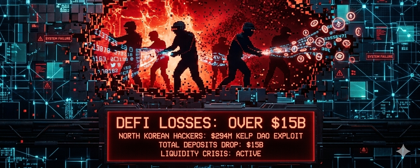 The decentralized finance landscape has entered a state of emergency as North Korean-linked hacking groups escalate their digital offensive, contributing to a staggering $15 billion drop in total DeFi deposits this year. The latest and most devastating blow came from a massive $294 million exploit on Kelp DAO’s cross-chain bridge, an event that has transformed from a single protocol failure into a systemic contagion. This wave of state-sponsored theft is no longer just about individual losses; it is actively hollowing out the liquidity of the entire ecosystem, forcing investors to pull their capital in a massive "flight to safety" that has shrunk the market’s total value by billions in just a few months.