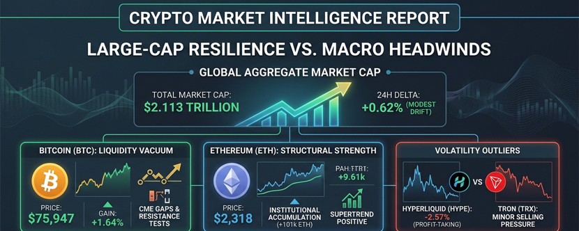 • Bitcoin ($BTC ): Trading at $75,947, BTC remains the primary liquidity vacuum. Despite a 1.64% gain, the "bull trap" narrative persists as price action creates CME gaps and tests technical resistance.
