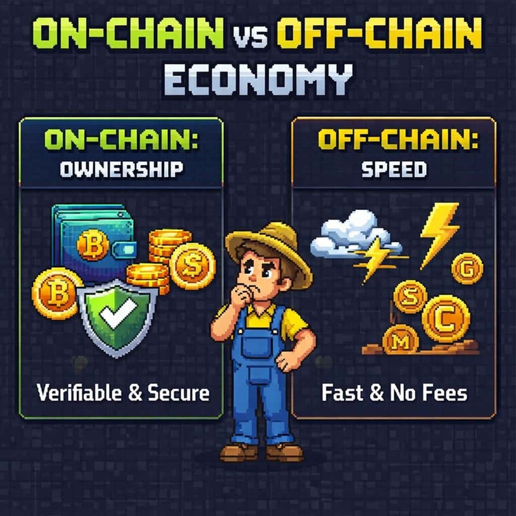 The design I've seen positions off-chain coins as a layer beneath the on-chain economy rather than a replacement for it. Routine small transactions happen off-chain. Significant asset ownership and trading stays on-chain. The idea is that you get the speed and affordability of a traditional game economy for everyday activity, while retaining genuine ownership for things that matter. In theory that's a reasonable hybrid.