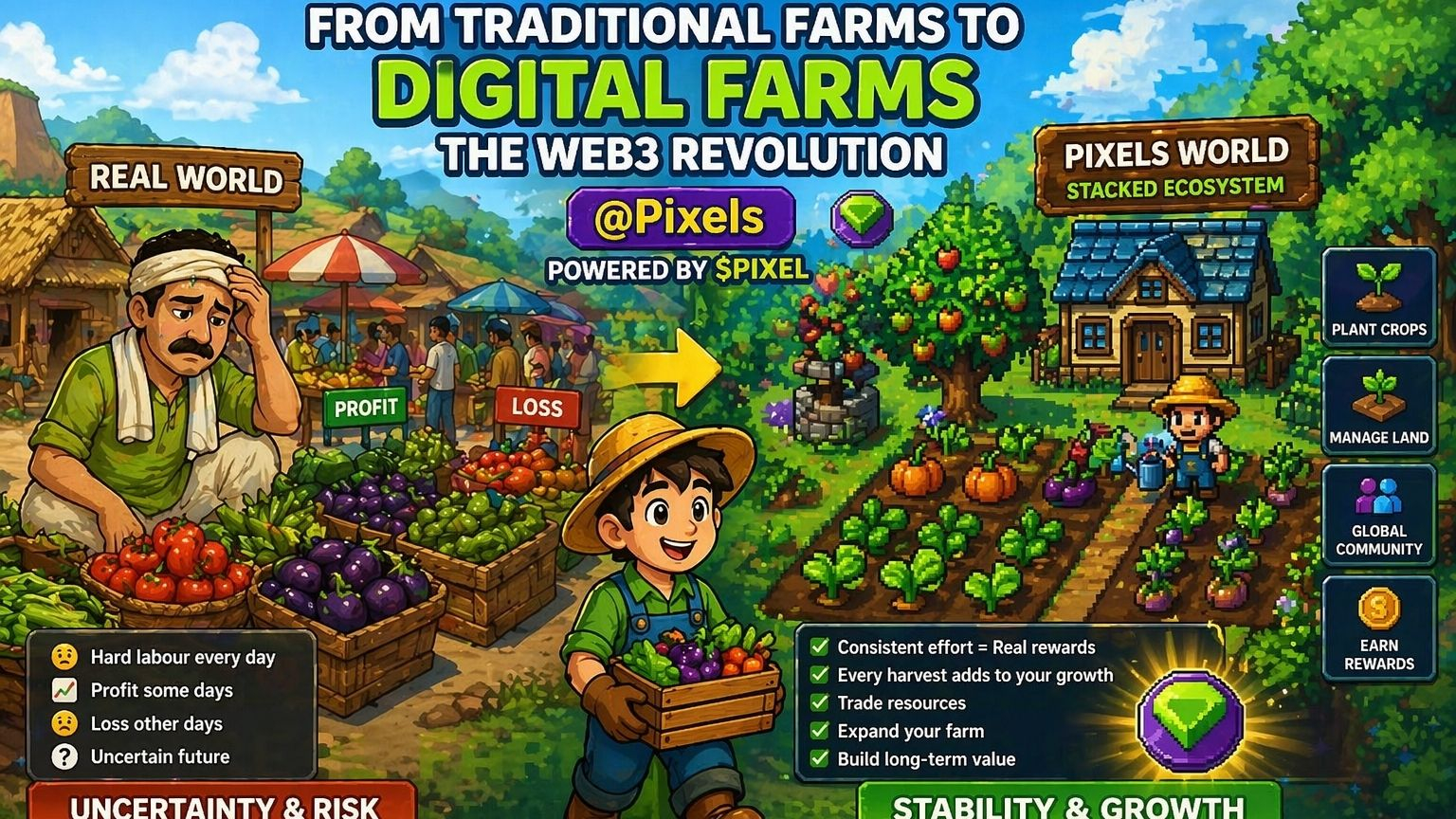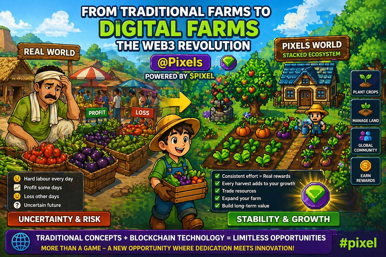 traditional villages and local markets, farmers spend their entire day growing vegetables and fruits with hard labour. Some days they earn profit when buyers come in large numbers, and other days they face loss when demand is low. This cycle of uncertainty has always been part of agriculture. But now, with the rise of Web3, platforms like @Pixels are transforming this experience into something more stable and rewarding.