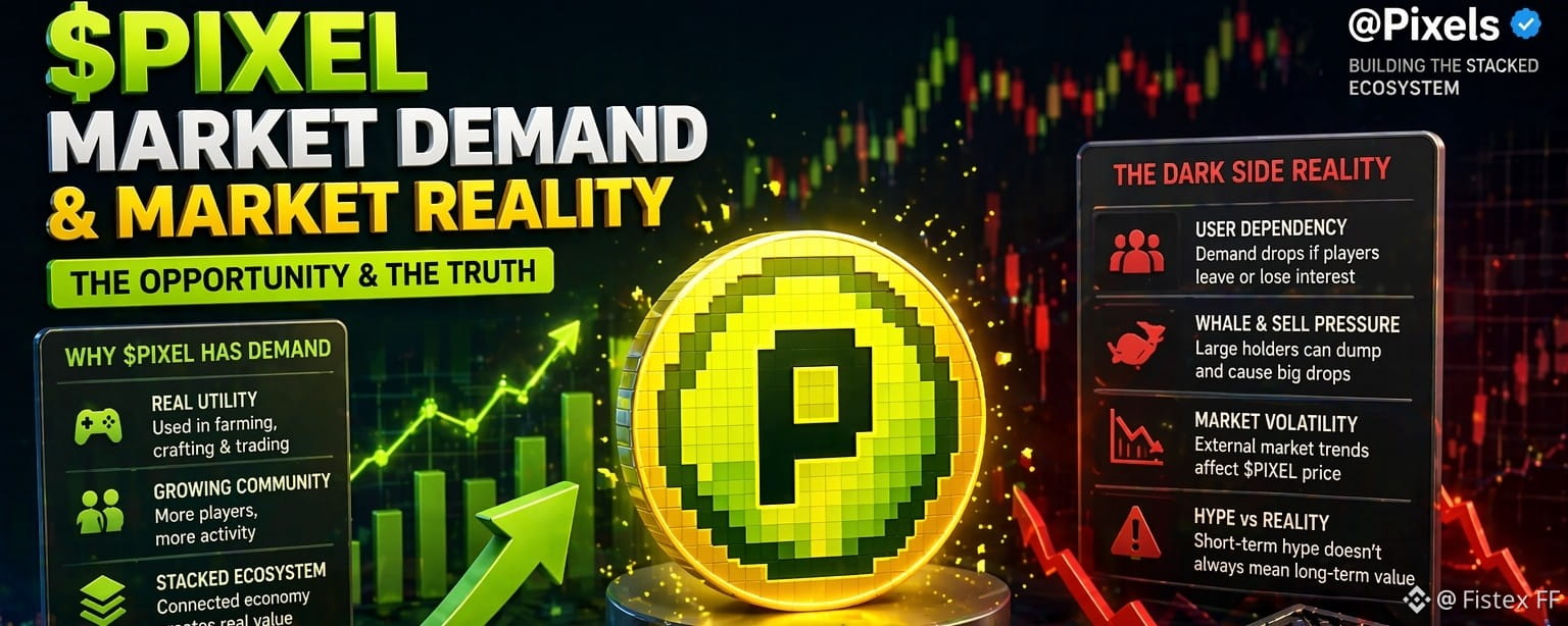 However, there is also a side that many people ignore. The demand for $PIXEL, is highly dependent on active users. If player growth slows down or engagement drops, the demand can weaken quickly. This is a common issue in many Web3 gaming projects where token value rises during hype phases but struggles to maintain strength over time.