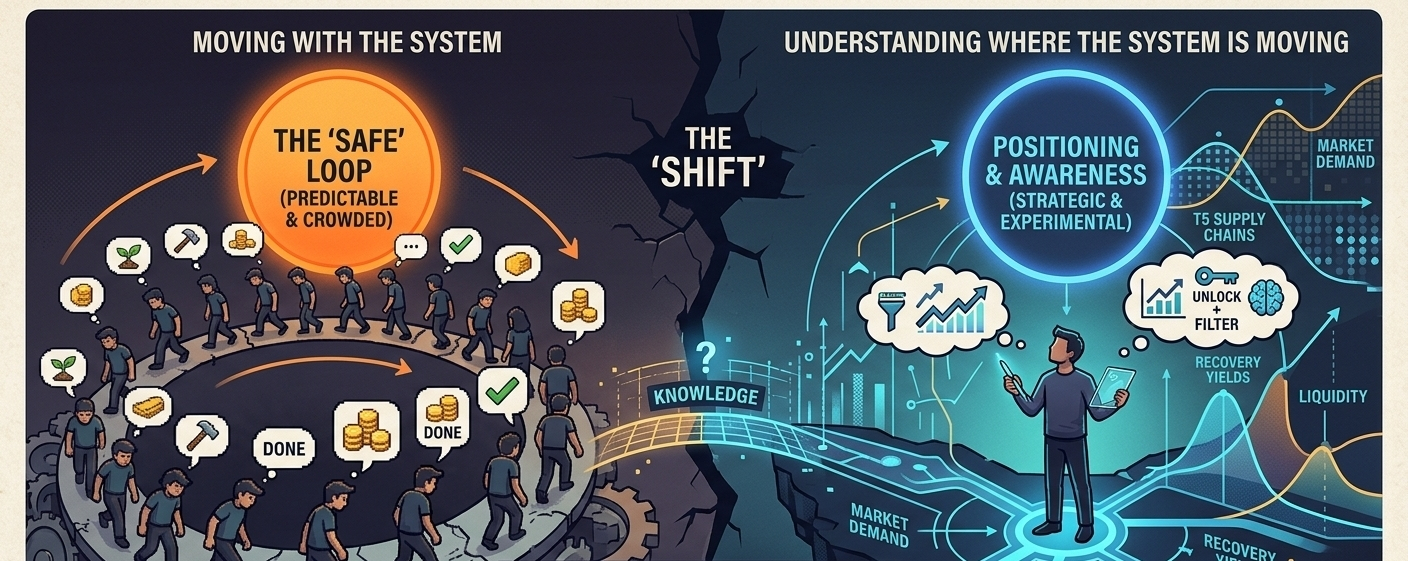 On the surface yeah we’re all farming, crafting selling doing our loops. It looks identical. But if you slow down for a second there’s a split happening underneath.Some people are just… moving with the system.Others are trying to understand where the system is moving.That difference feels small at first. But I don’t think it stays small for long.