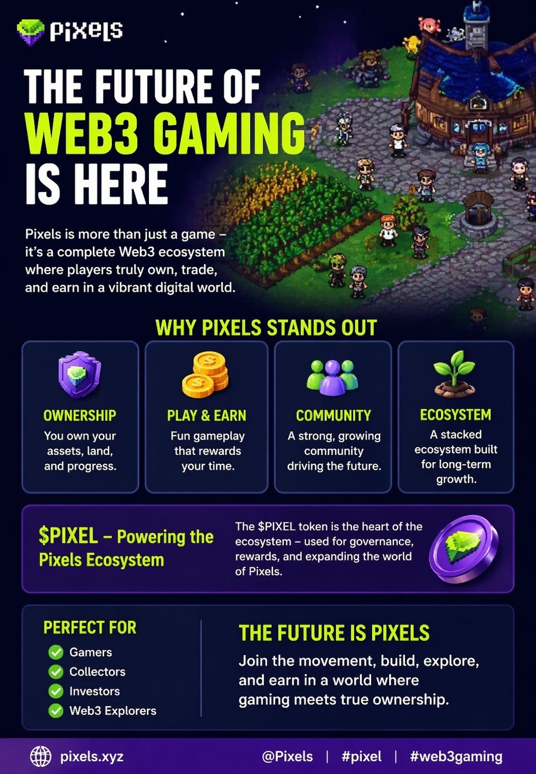 Web3 gaming is evolving , and @Pixels is leading the way with a powerful and engaging ecosystem. Pixels is not just a game—it’s a complete digital world where players can truly own their in-game assets, trade freely, and earn rewards through gameplay. With the integration of blockchain technology, $PIXEL brings real value to your time and effort in the game.