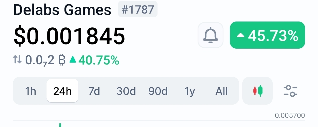 Delabs Games is up 45.93% to $0.00185 in 24h, dramatically outperforming a broader market that rose 2.45%. This surge appears primarily driven by a risk-on rotation into low-cap gaming and meme tokens, as no specific project catalyst was visible in the provided data.