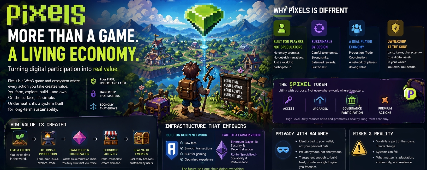 When I look at Pixels today, I don’t just see a Web3 game. I see a system that is trying to solve something deeper how to turn digital participation into something that holds value without constantly relying on speculation.