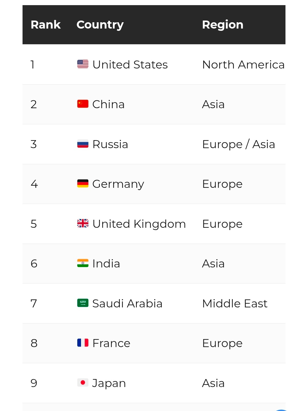 Major Asian spenders in the top 15 military spending by country ranking include: