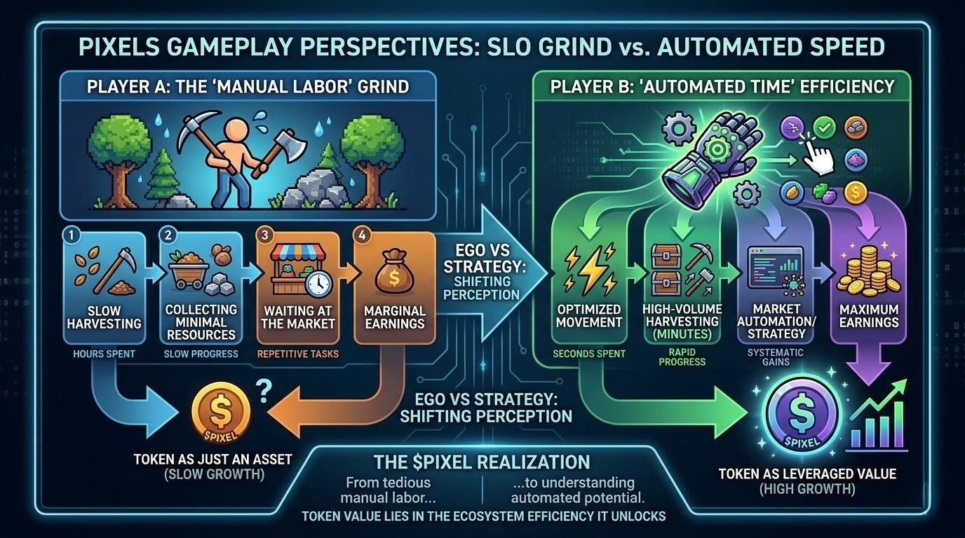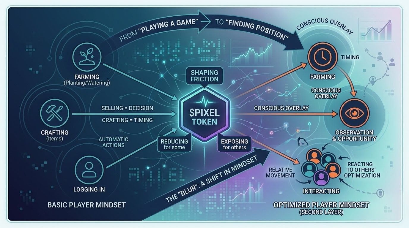 What makes it more interesting is that nothing in Pixels forces this mindset on you directly. It doesn’t demand attention it earns it slowly through observation. Through repetition. Through watching other players move differently inside the same constraints.