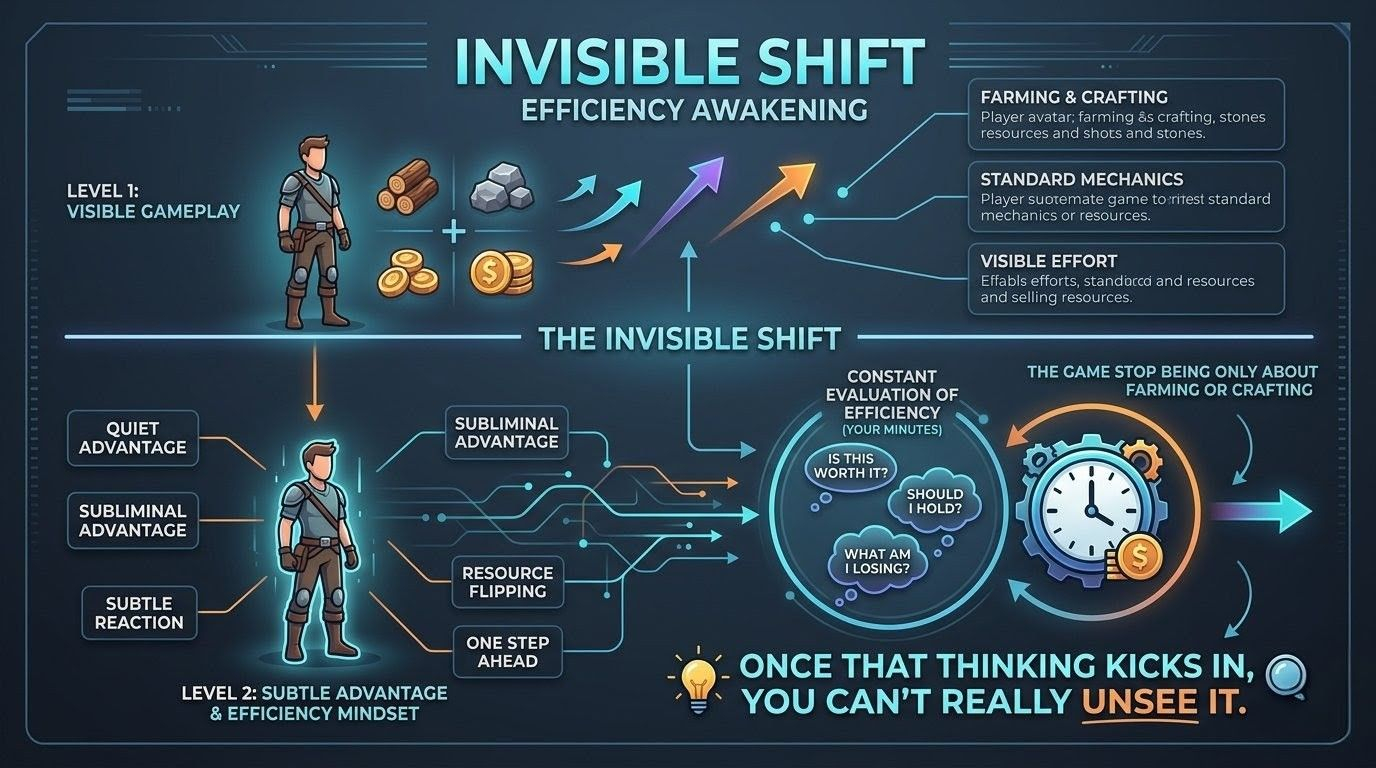 That’s the invisible shift. The game stops being only about farming or crafting and starts turning into a constant evaluation of efficiency of your own minutes.