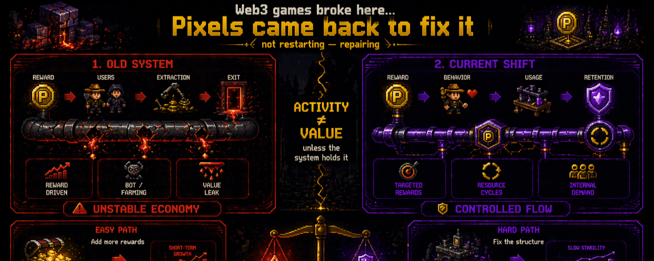 Nhiều người vẫn nhìn PIXEL như một game có reward, nhưng mình bắt đầu thấy nó giống một hệ đang cố build lại economy sau khi hiểu rằng activity không có nghĩa gì nếu bên dưới bị leak. Cái quan trọng không phải event, mà là cái event đó đang nằm trong một hệ như thế nào.