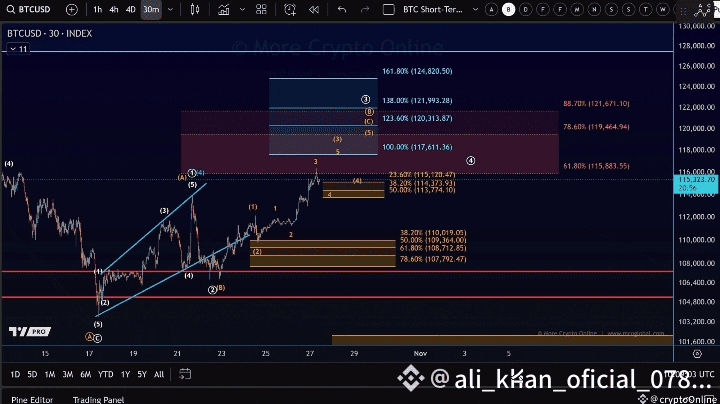 🔹 $115,883 — the 61.8% retracement of the last decline from the all-time high (~$126,300).