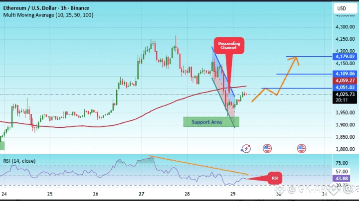 There is a key support zone in green at the 3900 price level, representing a strong support point.