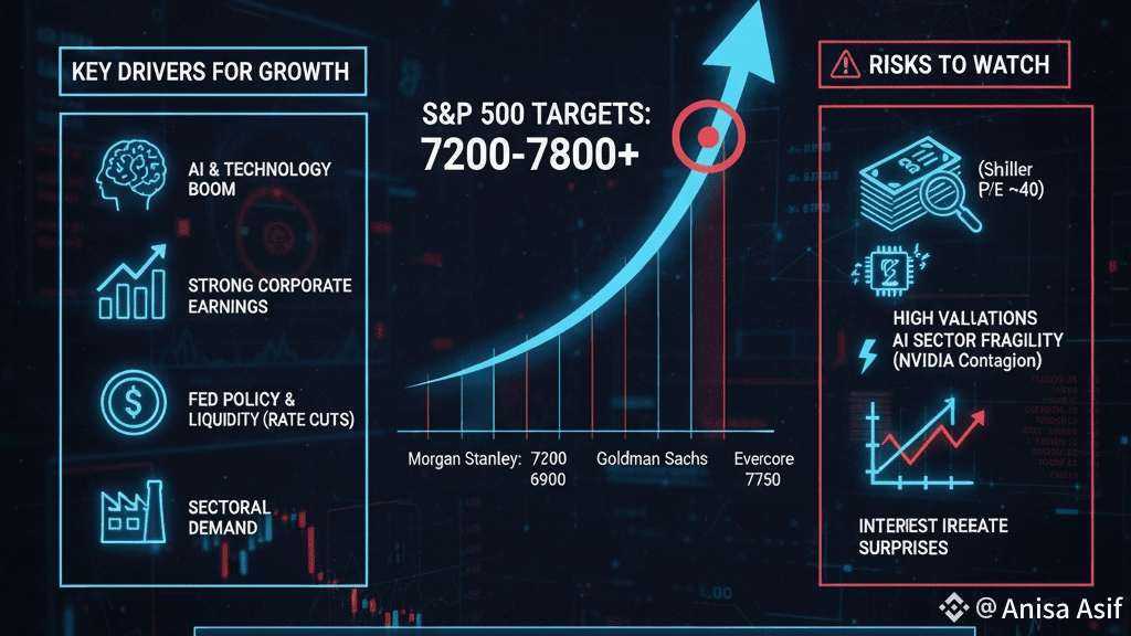Optimistic outlook: S&P 500 around 7,200+, supported by corporate earnings and favorable policy conditions.