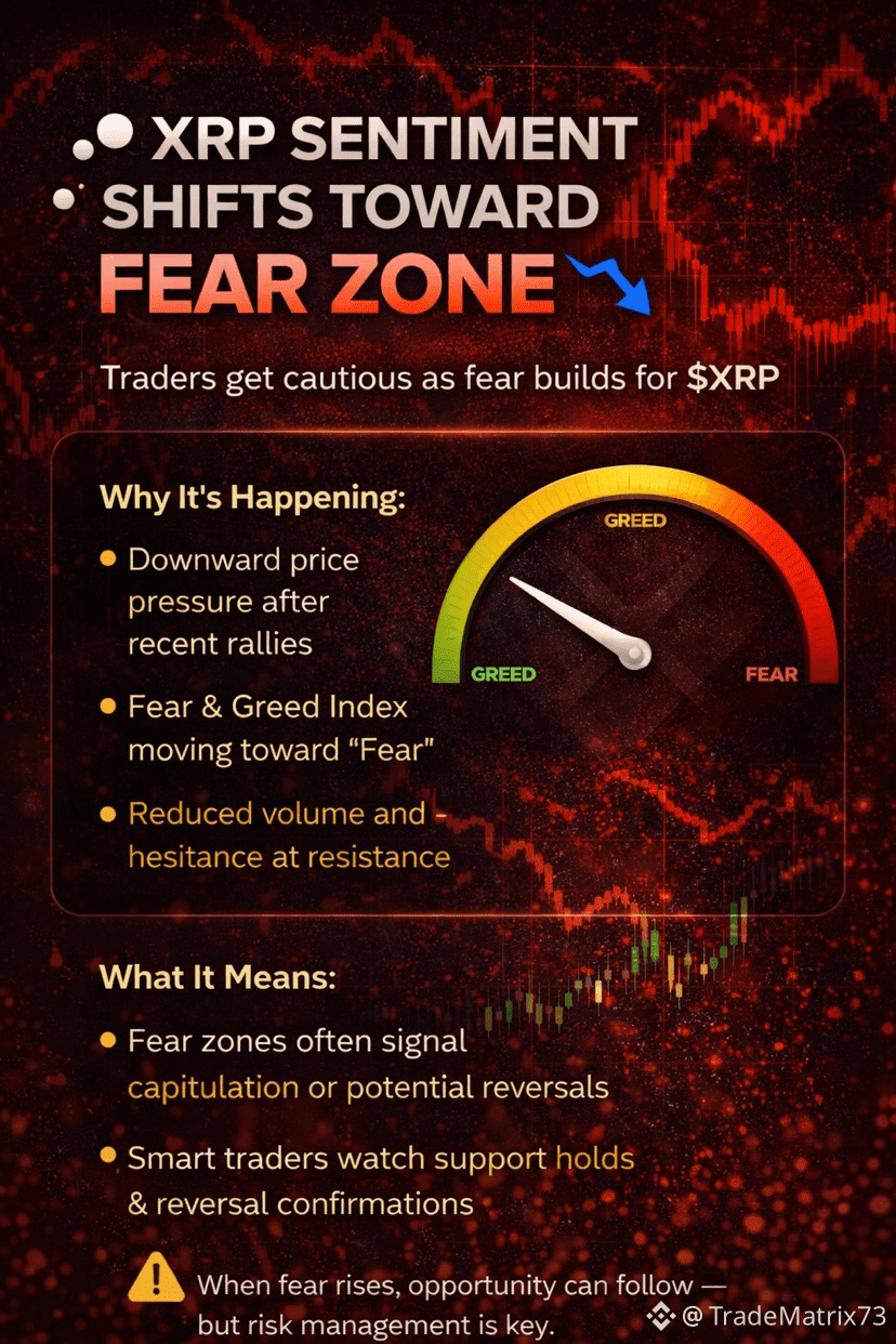 Market sentiment around $XRP has turned cautious as traders trim positions and fear indicators rise.