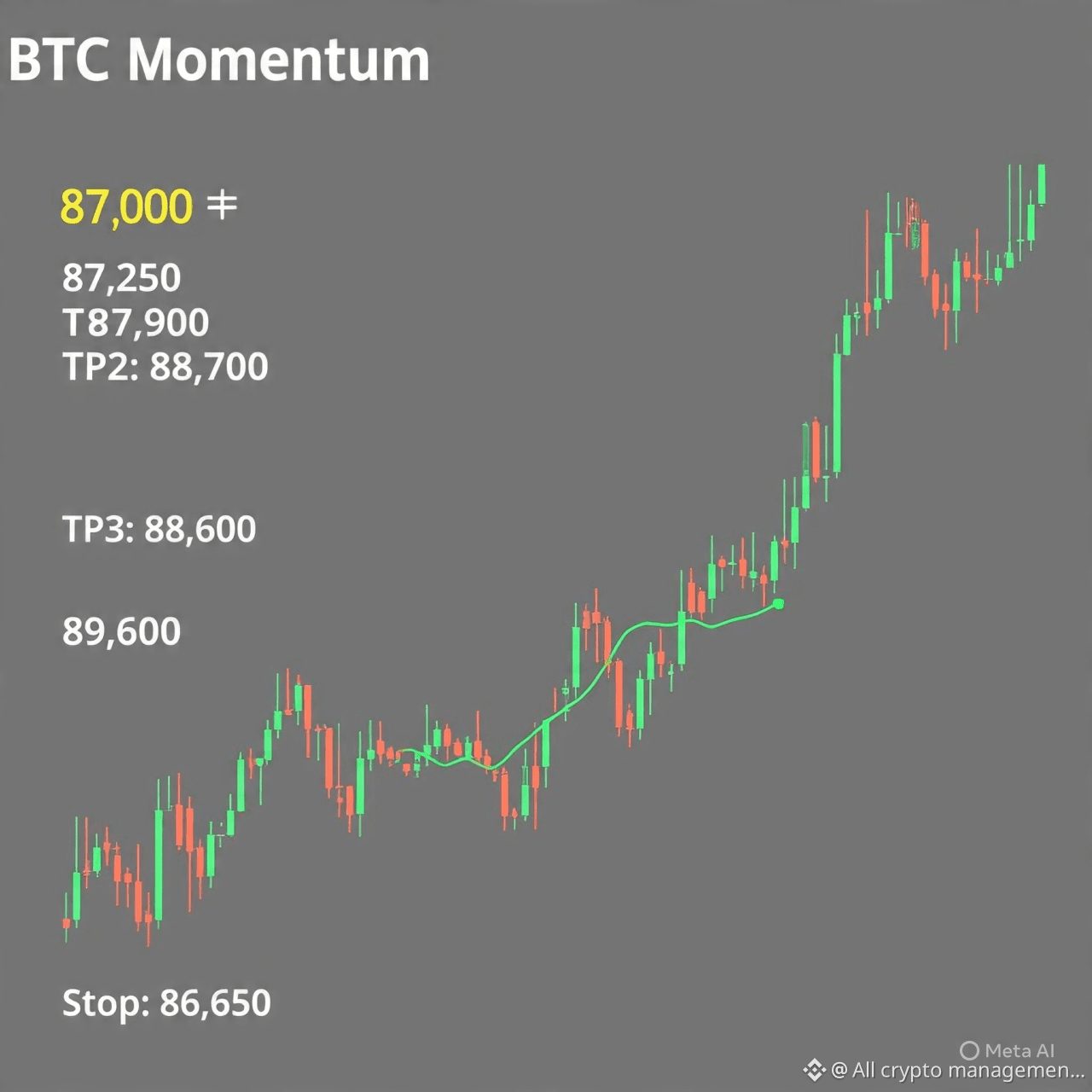 As long as $BTC stays above the stop level, the bullish bias remains intact. Expect volatility around the first target, with continuation likely if volume steps in. 📈