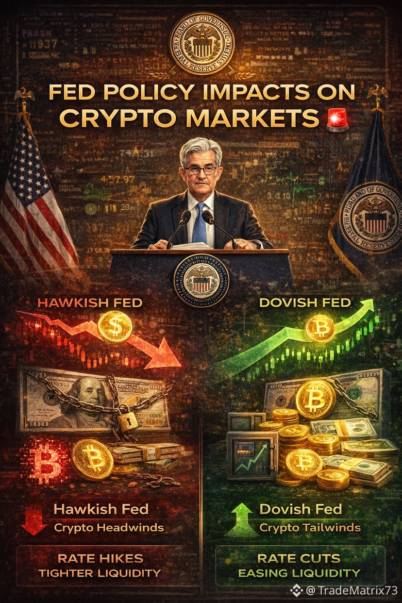 When the Fed raises interest rates or keeps policy tight, liquidity dries up, the dollar strengthens, and risk assets like crypto often face pressure.