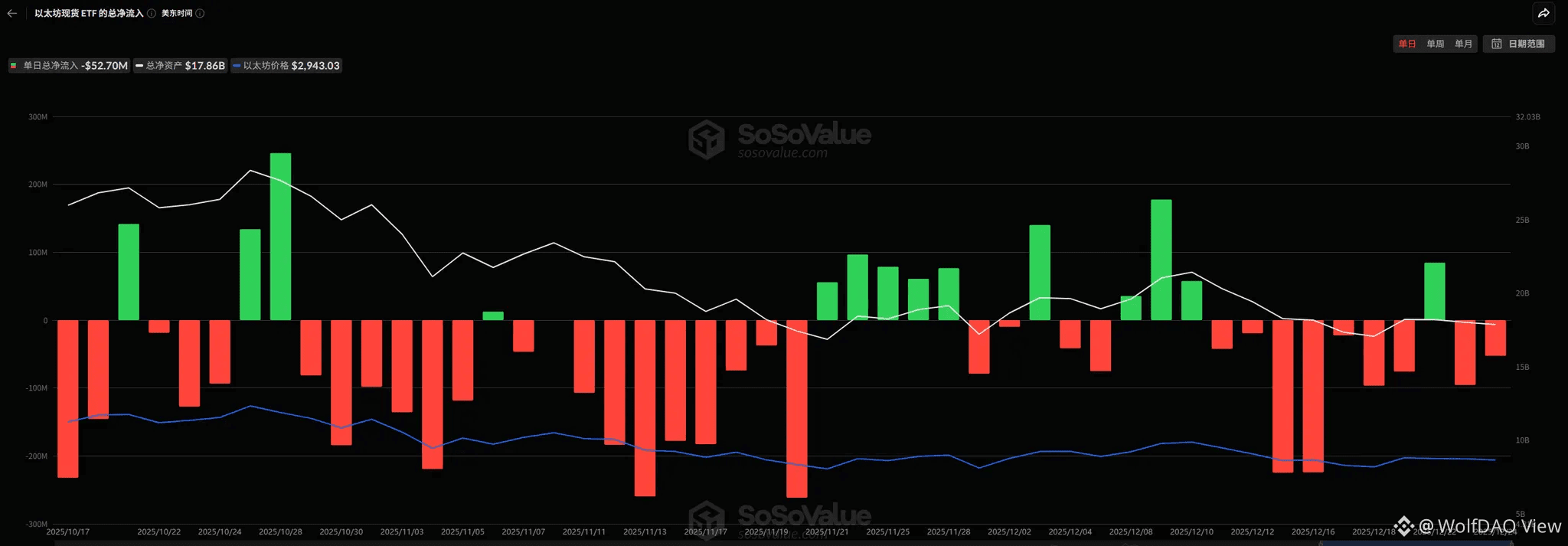 本周以太坊 ETF 净流出量为 - 1.3953 亿美元,相较于上周 5.875 亿美元的净流出规模,流出幅度明显减弱。以太坊价格本周呈震荡走势,未出现持续性下跌,与 ETF 流出收窄形成呼应。若后续能维持这一趋势,将为以太坊反弹行情提供有力支撑。