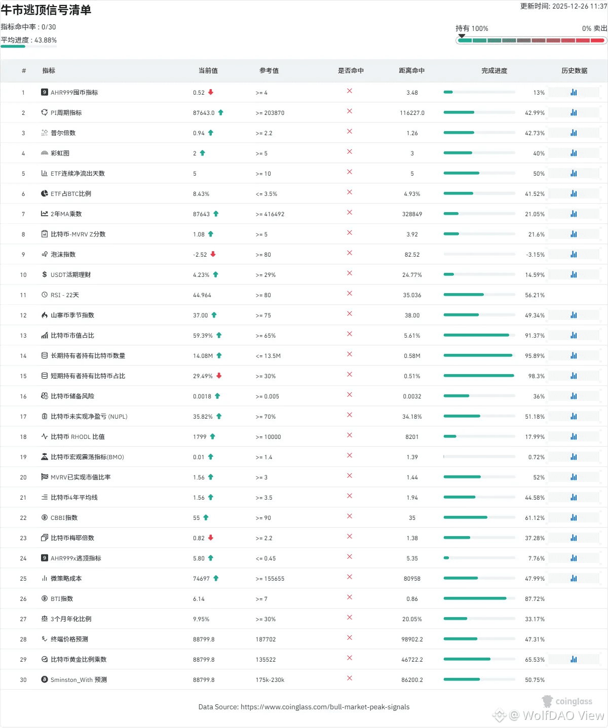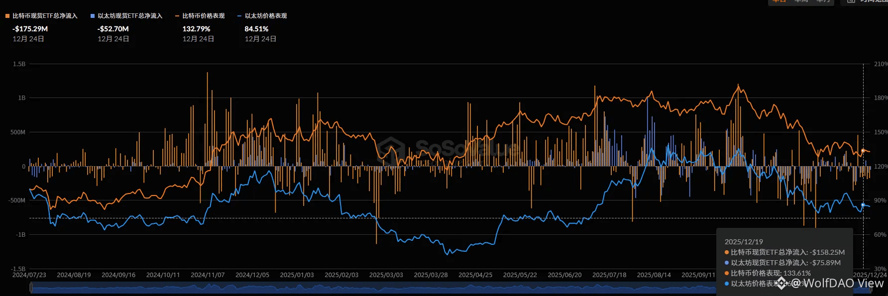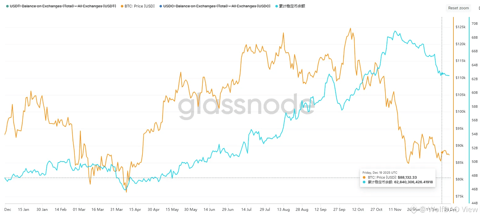 本周(12/20-12/26)稳定币单周增发量为 - 3.26 亿美元,资金延续流出态势,但流出规模显著收窄。相较于上周 - 8.24 亿美元的负增发,本周日均负增发从 - 1.177 亿美元回落至 - 0.465 亿美元,整体资金流量环比上升 60%。大盘本周以震荡为主,未出现持续性下跌,与稳定币流出减弱的趋势形成相互印证。