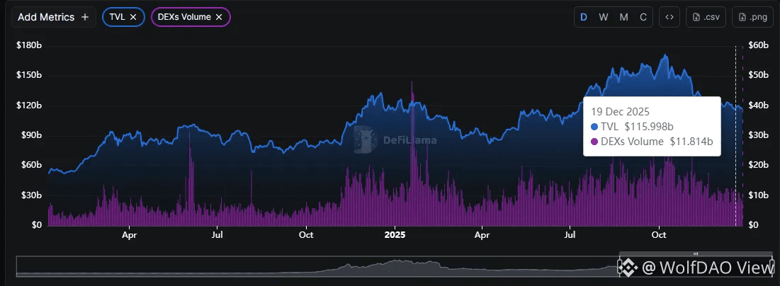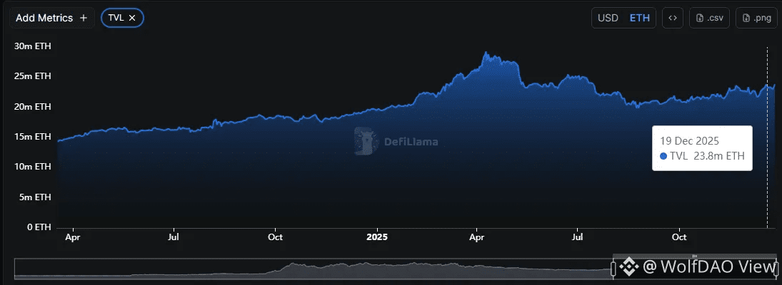 链上总 TVL 达 1175 亿美元,环比上涨 1.29%,整体呈震荡态势。ETH 质押数量保持稳定,趋势上呈现震荡走高格局,反映出长期持有者信心相对稳固。