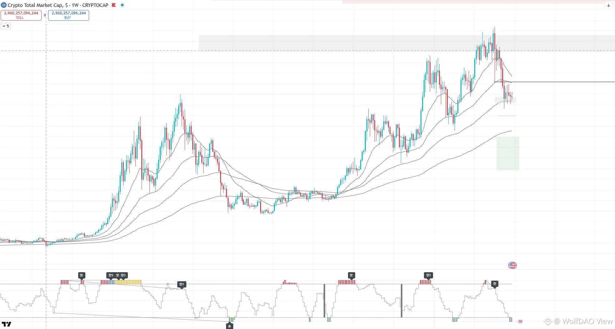 本周加密市场总市值回落至 3 万亿美元附近,精准回踩周线级别 EMA100 均线。当前指标已出现周线级超卖信号,结合 2021 年以来周线超卖信号的历史表现,从技术面来看,市场具备反弹潜力。
