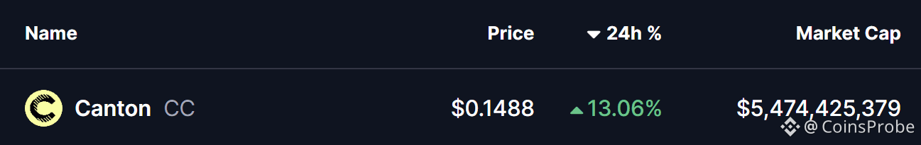 The broader cryptocurrency market is showing modest strength, with both Bitcoin (BTC) and Ethereum (ETH) trading in the green. This steady performance among major assets has helped stabilize overall market sentiment, allowing select altcoins — including Canton (CC) — to develop constructive technical setups.