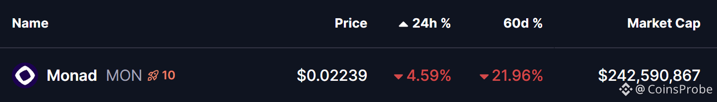 Overall, MON’s emerging rounding bottom formation suggests the token may be approaching an important inflection point. While confirmation is still pending, the improving structure and alignment with a classic bullish pattern indicate that the coming sessions could be decisive for Monad’s next directional move.