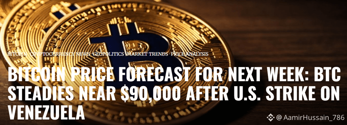 Bitcoin's price is hovering around $90,000 after the recent U.S. strike on Venezuela, causing market volatility. Analysts predict a choppy range trade for the coming week, with support at $88,500 and resistance at $90,800. If geopolitical tensions ease, Bitcoin could target $96,000-$100,000, but a risk-off move could push it below $80,000.