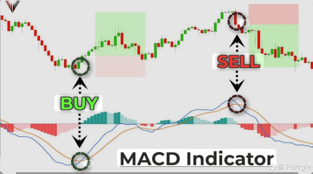 MACD works because it shows momentum and trend at the same time. It does not predict the future, it shows what is already happening under the hood. When the MACD line crosses above the signal line, it means momentum is shifting bullish. When it crosses below, momentum is turning bearish. That is it. No magic, no fantasy, just data.