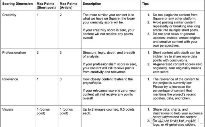 Follow bonus points will only be counted once per creator, and likes will only be counted once per post.