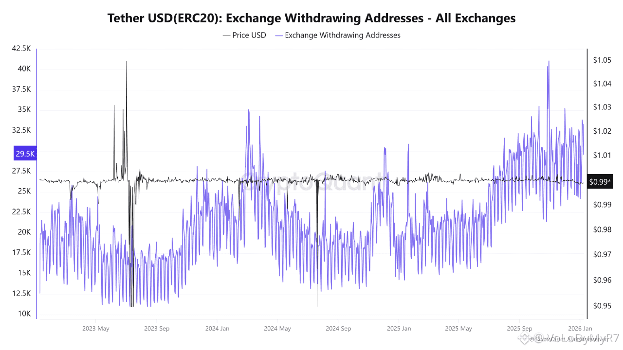 Зростання EWA свідчить про те, що інвестори використовують свої запаси стейблкоїнів, або «суху порох», для диверсифікації в активи, такі як BTC, ETH, XRP, TRX та інші альткоїни. Це відображає зростаючу зацікавленість, а не відсутність довіри. Останні дані показують близько 27 000 активних адрес виведення коштів з біржі та зростання до 12 000 адрес внесення коштів з біржі з травня 2025 року, що підкреслює зростаючу купівельну напругу щодо стейблкоїнів.