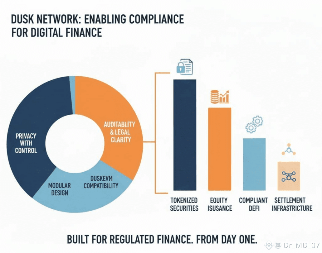 On a practical level, Dusk is ready for the kinds of projects institutions actually want to do tokenized bonds, equity issuance, compliant DeFi, or settlement infrastructure for regulated markets. All of these rely on confidentiality, but they also need verifiable integrity. Dusk’s modular design means it can support all these applications without forcing everyone into the same box.