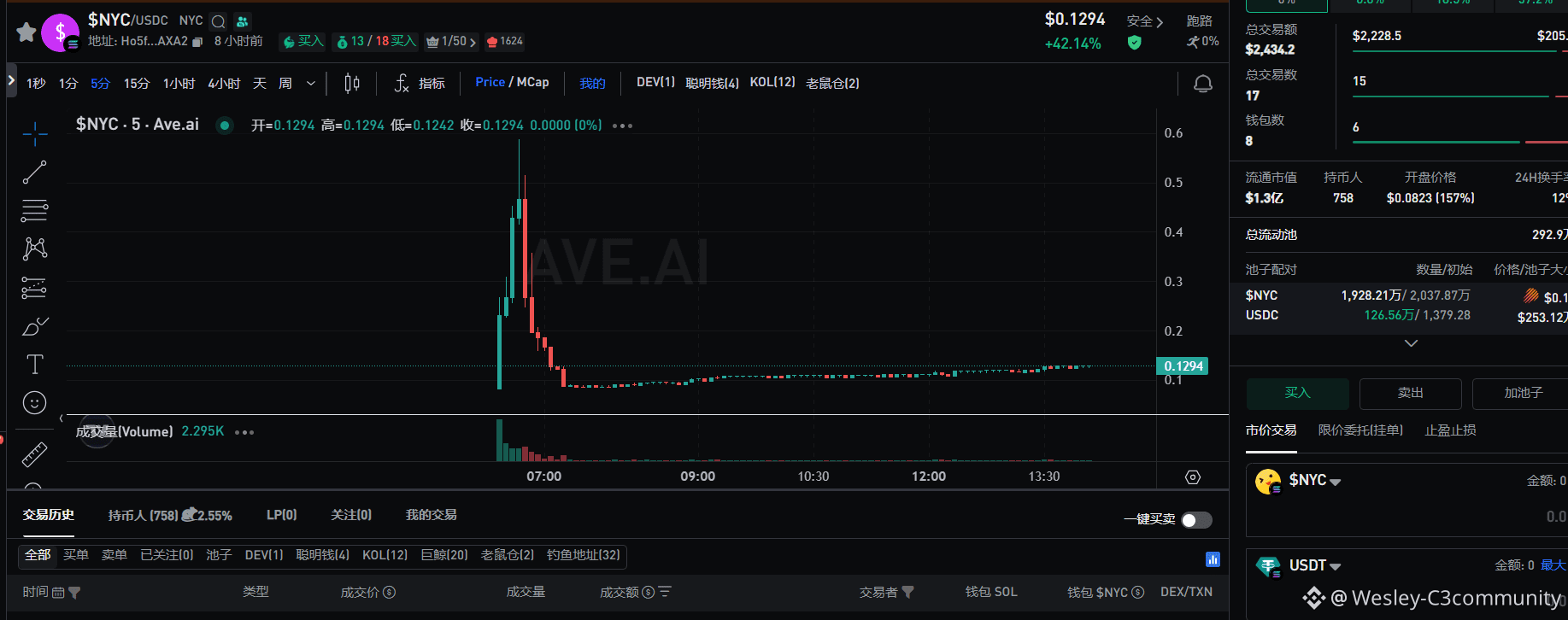 NYC Token上线后迅速下跌
