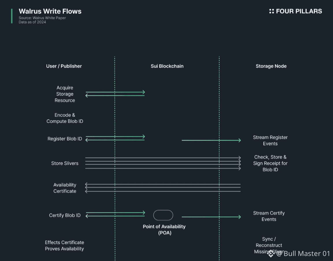 Every storage operation from payment to availability proofs is coordinated via Sui smart contracts.