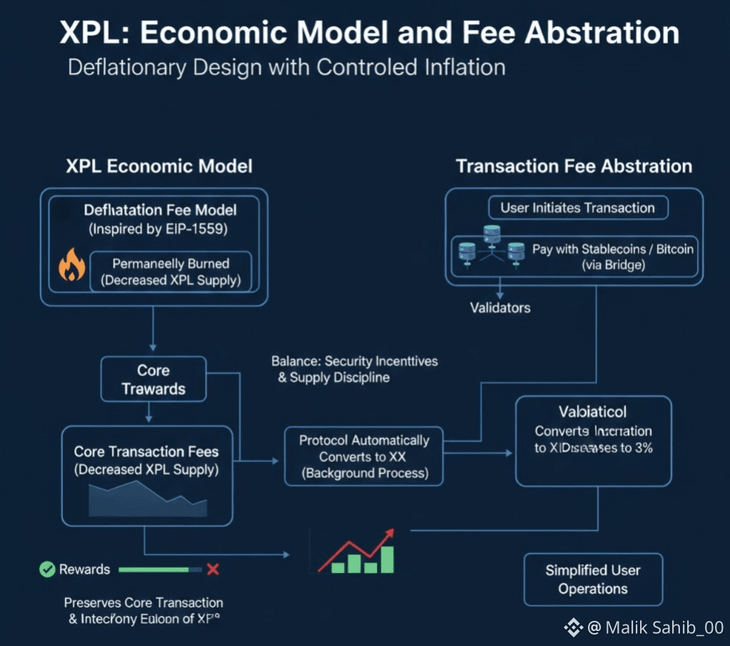 Transaction fee abstraction is a key innovation. Users can pay fees using stablecoins or Bitcoin via a bridge, and the protocol automatically converts these fees to XPL in the background. This simplifies user operations while preserving the core economic functions of XPL.