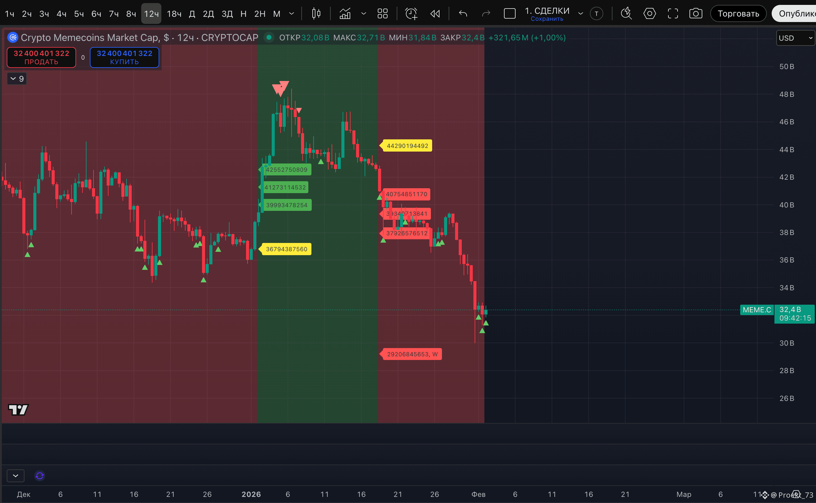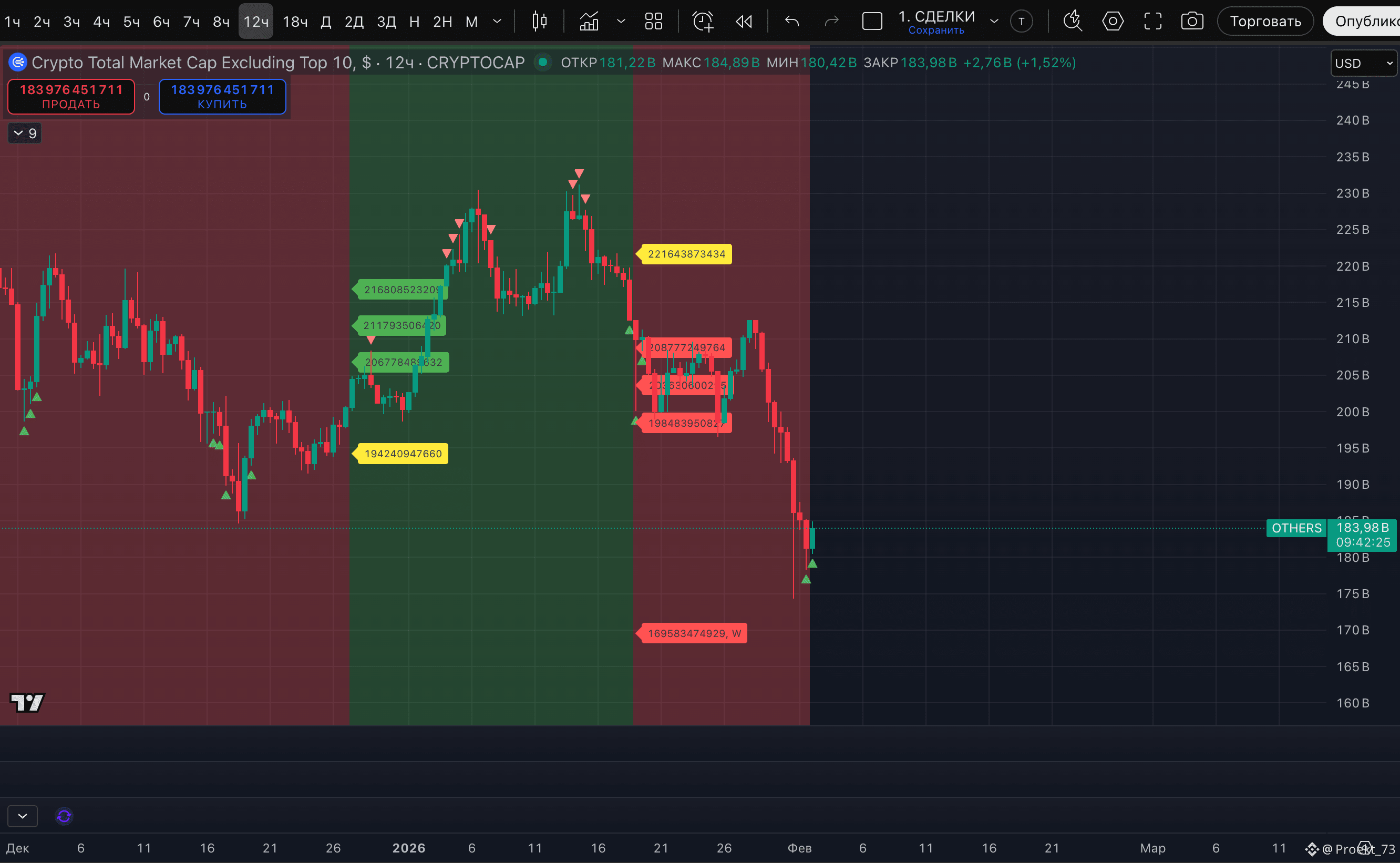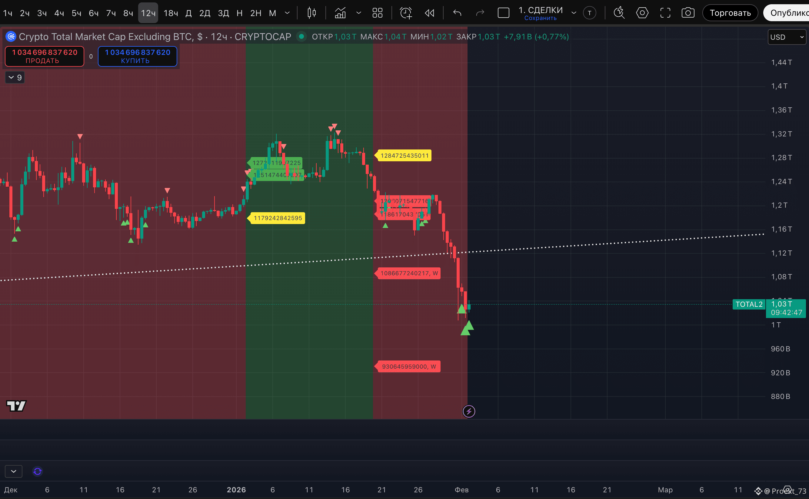 - Уже третья Strong signal потенциального лоя на 12-часовом ТФ у TOTAL, TOTAL2, TOTAL3. При этом две обычные метки у OTHERS и три - у MEME.C.
