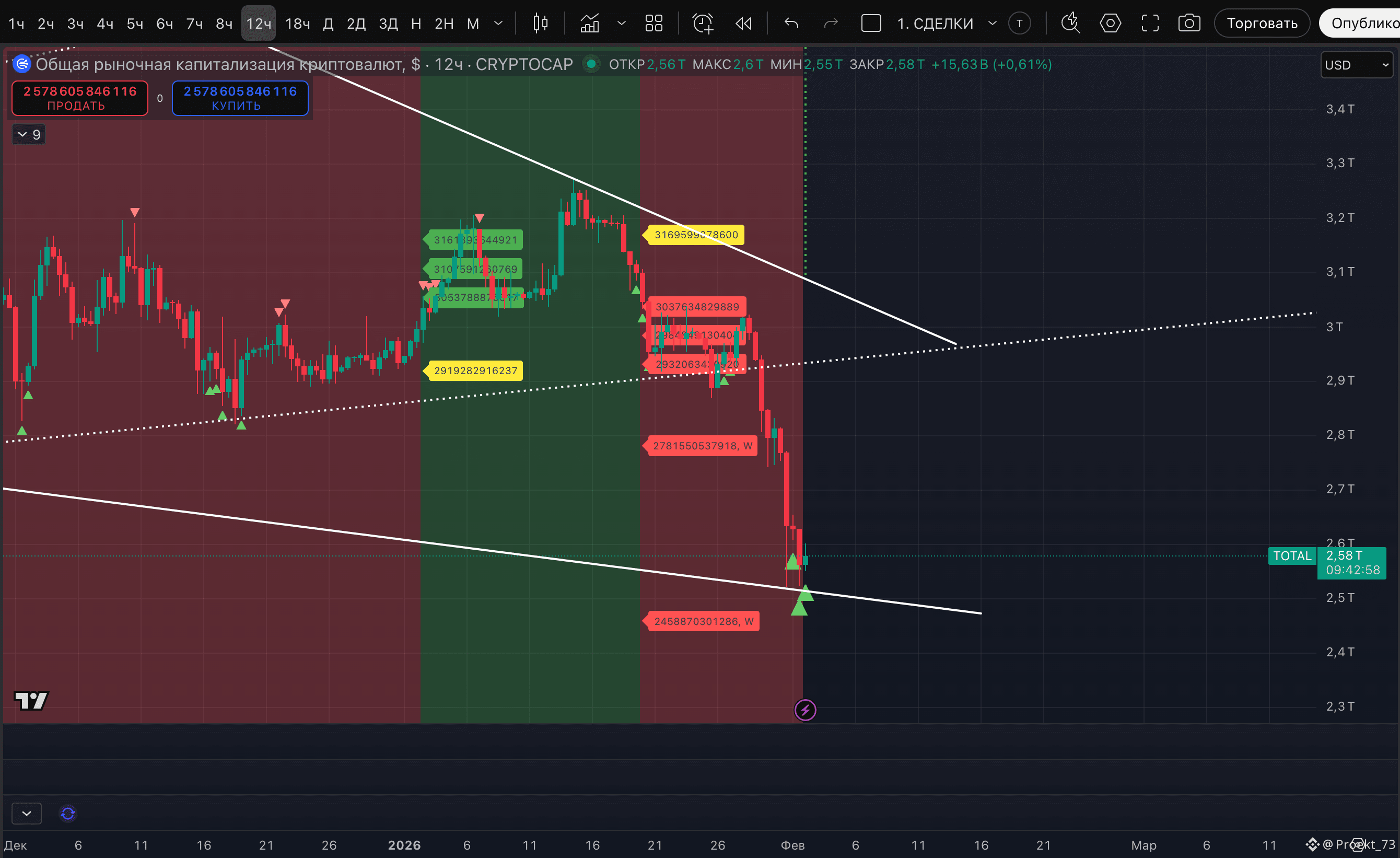 Потому прогноз об оформлении дна крипторынка 31 января - 2 февраля в силе и старта роста ждем в рамках понедельника. Допуская финальный вынос в первой половине дня, до закрытия третьей свечи на 12-часовом ТФ.