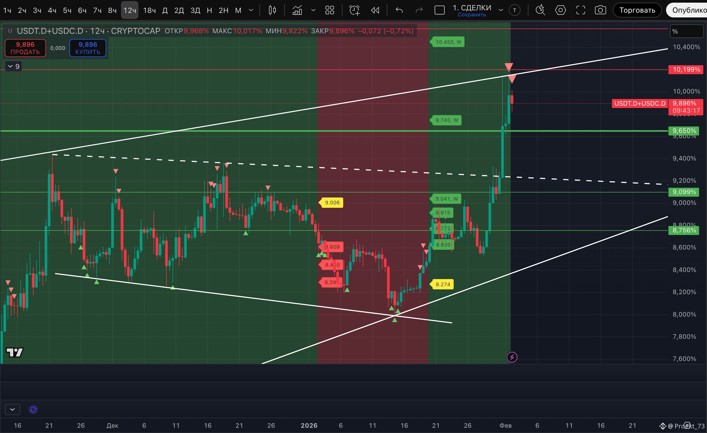 - Уже вторая Strong signal потенциального хая на 12-часовом ТФ у доминации стейблкоинов USDT+USDC.