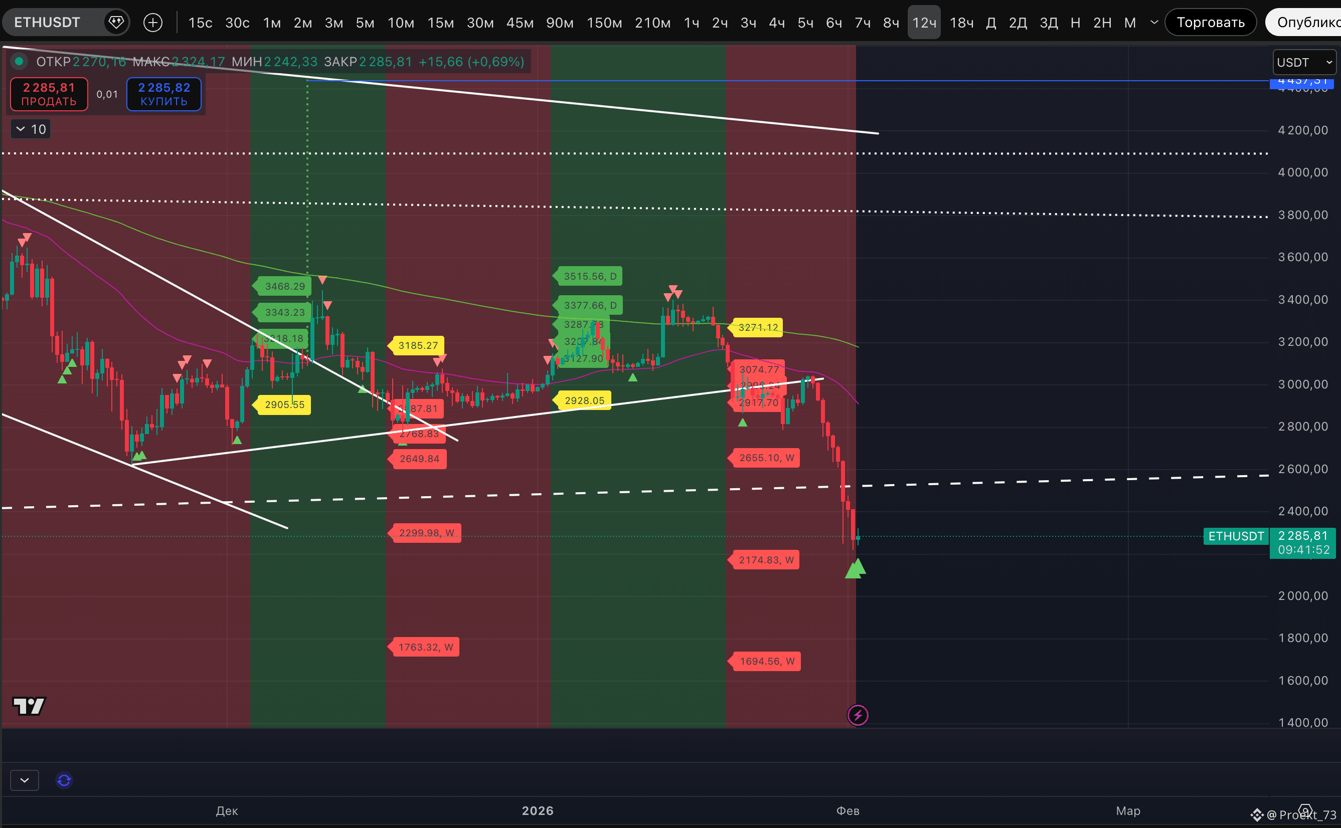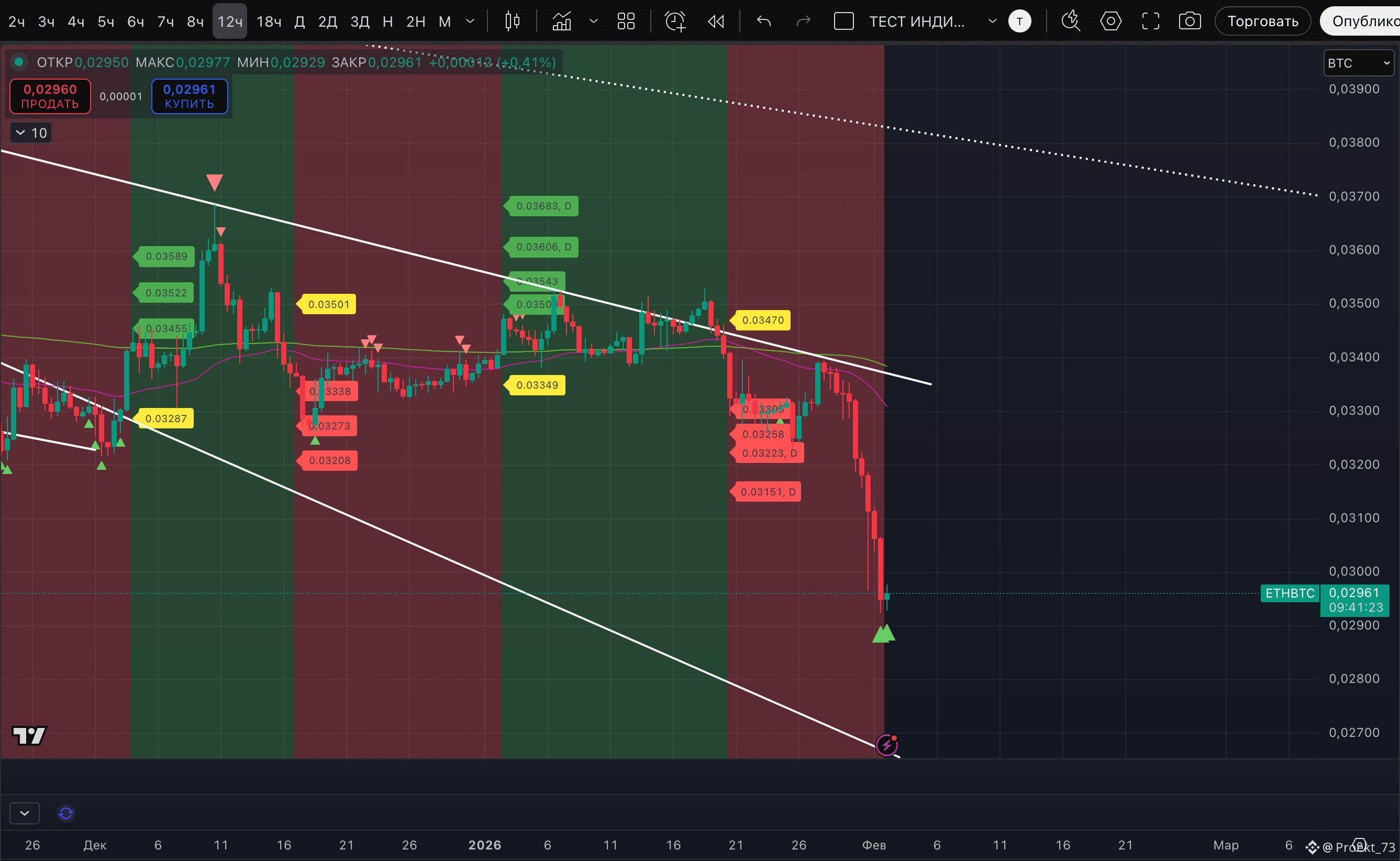 - Уже вторая Strong signal потенциального лоя на 12-часовом ТФ у ETH и пары ETH/BTC.
