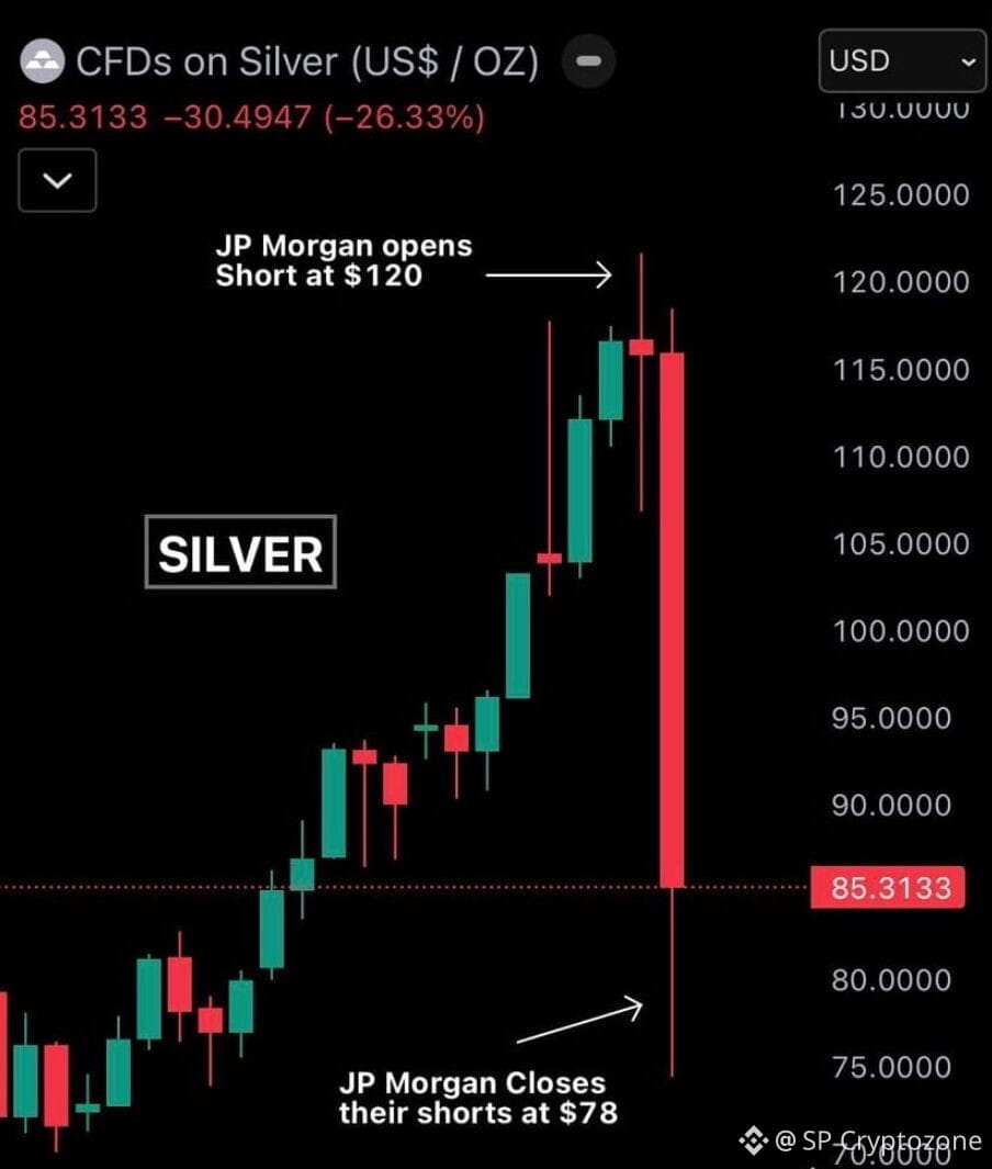 During the decline, COMEX data indicates that JPMorgan sold 633 February silver contracts, which positioned them on the short side at the time of delivery. Traders are circulating a straightforward theory: short positions were established near the high point and then closed at significantly lower prices, while other positions were liquidated.