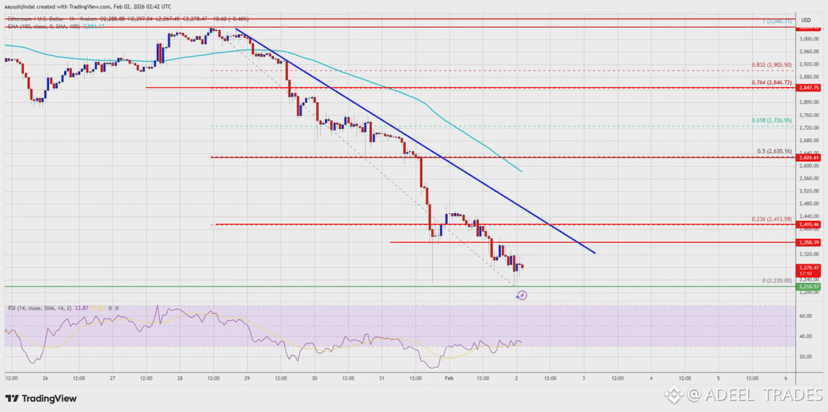 Ethereum price started a major decline after it failed to clear $2,500. ETH is down 20% and is now struggling to stay above the $2,200 support.