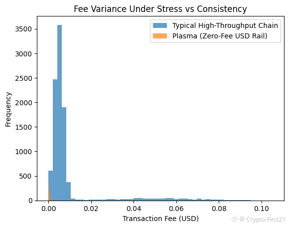 When you look past medians and into fee variance, the difference becomes obvious. Some chains advertise sub cent fees but hide brutal spikes in the 95th percentile during stress. Plasma removes that tail risk entirely for a specific class of transactions. The cost is not hidden, it’s paid in opportunity. Plasma won’t extract value from congestion or trend on benchmark charts. It accumulates trust slowly.