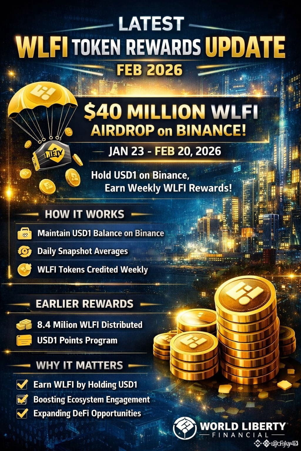 This is your chance to earn WLFI just by holding USD1! 🔥 Don’t sleep on it — program runs Jan 23 – Feb 20.