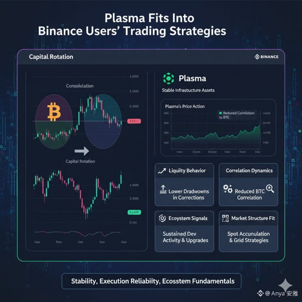 Ultimately, Plasma’s current phase illustrates a recurring crypto truth. When BTC dictates tempo and volatility compresses, patience aligns closely with fundamentals. Development continuity, architectural clarity, and ecosystem relevance become the real differentiators. Anya sees Plasma not as inactive, but as operating within a phase where value compounds quietly—making patience less a virtue and more a measurable market strategy.