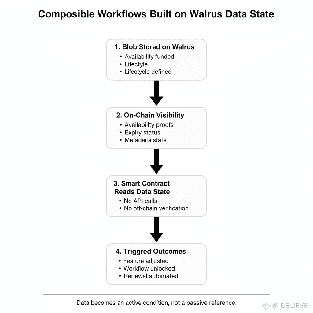 Most systems externalize data logic — they only expose retrieval APIs. With Walrus, the data itself is part of the on-chain universe. Developers can program around storage states, query availability, react to lifecycle changes, and embed data conditions into contract flows. You can’t do that with simple URLs or hash pointers. That is composability.