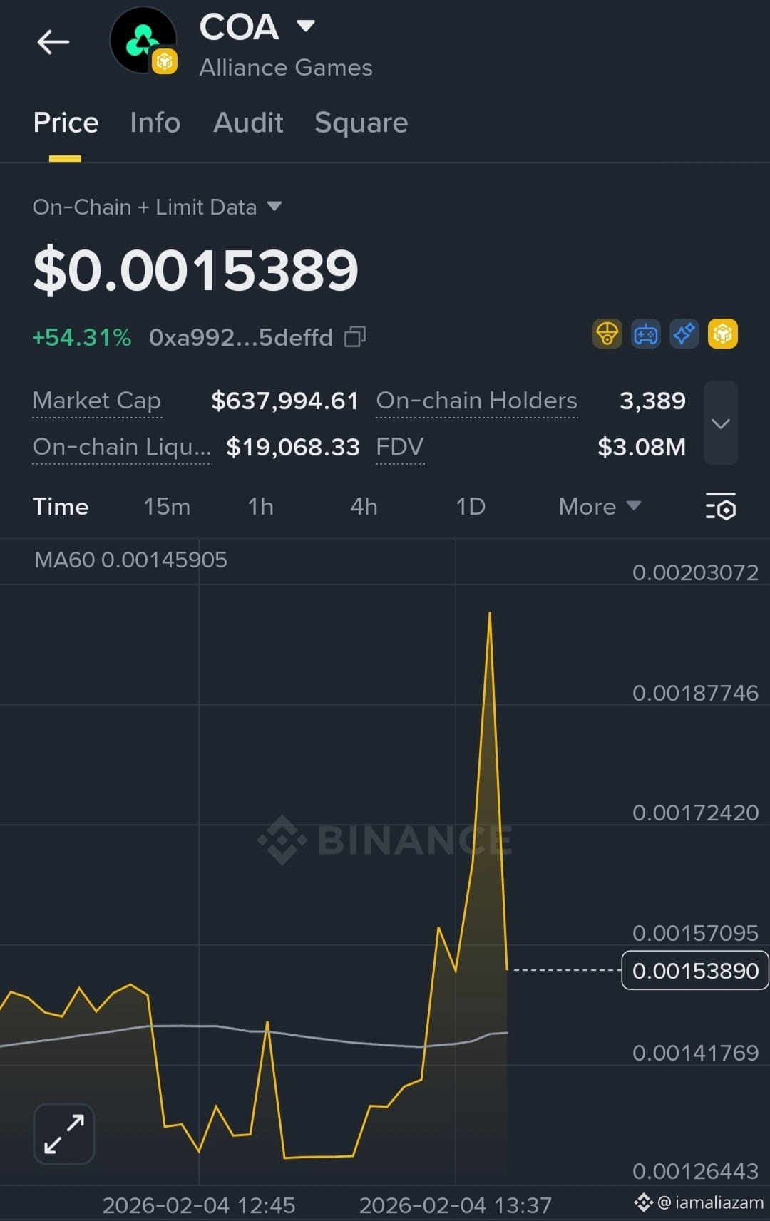 COA currently sits at a very low market cap (~$637K) with limited on-chain liquidity (~$19K). In such conditions, even moderate buy pressure can result in exaggerated price movements. Once momentum kicked in, price accelerated rapidly due to the lack of overhead supply.