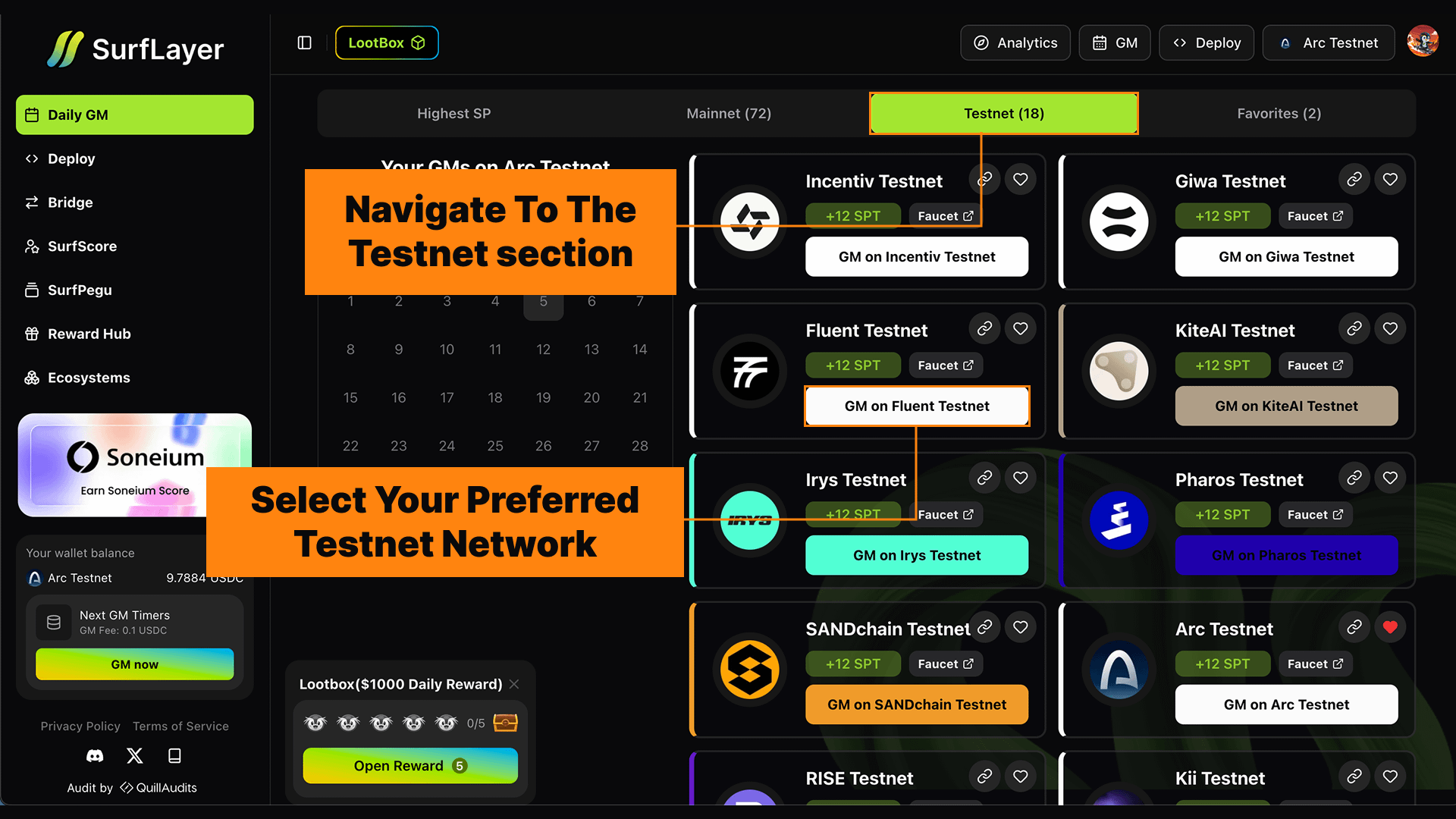 SurfLayer simplifies testnet participation by turning common on-chain actions into structured, easy-to-complete interactions — most of which require only small amounts of testnet tokens.