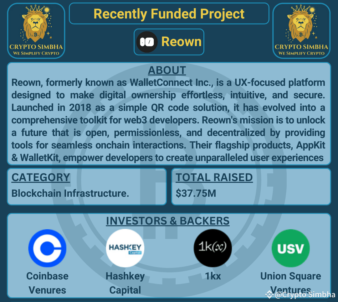 ๐นAbout: Reown, formerly known as WalletConnect Inc., is a UX-focused platform designed to make digital ownership effortless, intuitive, and secure. Launched in 2018 as a simple QR code solution, it has evolved into a comprehensive toolkit for web3 developers. Reown's mission is to unlock a future that is open, permissionless, and decentralized by providing tools for seamless onchain interactions. Their flagship products, AppKit and WalletKit, empower developers to create unparalleled user experiences by simplifying wallet login, social and email login, and embedded wallet features. With a focus on accessibility and ease of use, Reown aims to make blockchain technology accessible to everyone, from crypto-natives to newcomers. The platform supports multi-chain interactions and offers innovative solutions for compliance and payments. By fostering collaboration and innovation, Reown is dedicated to shaping the standards and best practices in the web3 space. Their vision for the future includes expanding multi-chain support, enhancing user experience, and driving ecosystem growth. Reown is committed to creating a better digital landscape for ownership and usability.๐๐