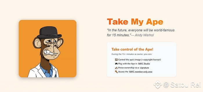 Their latest project, a proof-of-concept named “Take My Ape,” is more than just a typical experiment. It’s giving us a glimpse into the future of NFT rentals, where you can temporarily rent a Bored Ape Yacht Club (BAYC) NFT 🐵 and enjoy all the associated privileges.