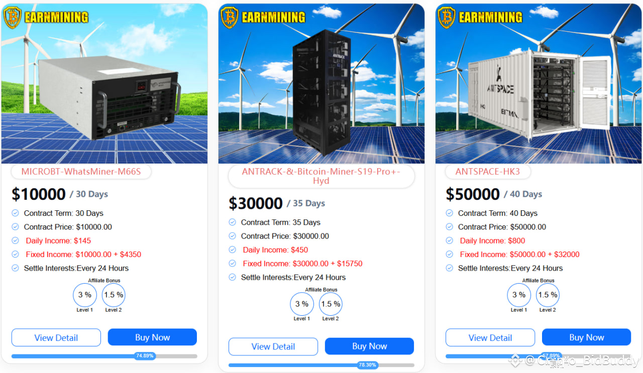 EarnMining offers a variety of profitable contracts to meet your financial goals. Whether you are looking for short-term gains or long-term passive income, there is always a plan for you.