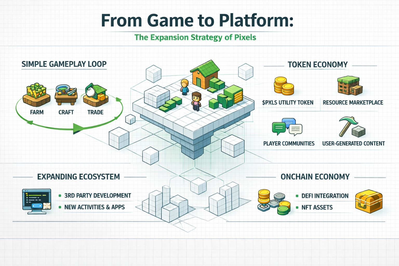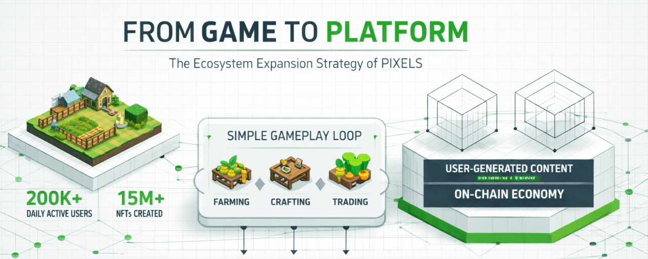 In that context, the idea of a game transforming into a platform seems to be the next step that many projects are aiming for, not just Pixels, but Pixels is a case worth observing a bit more closely.