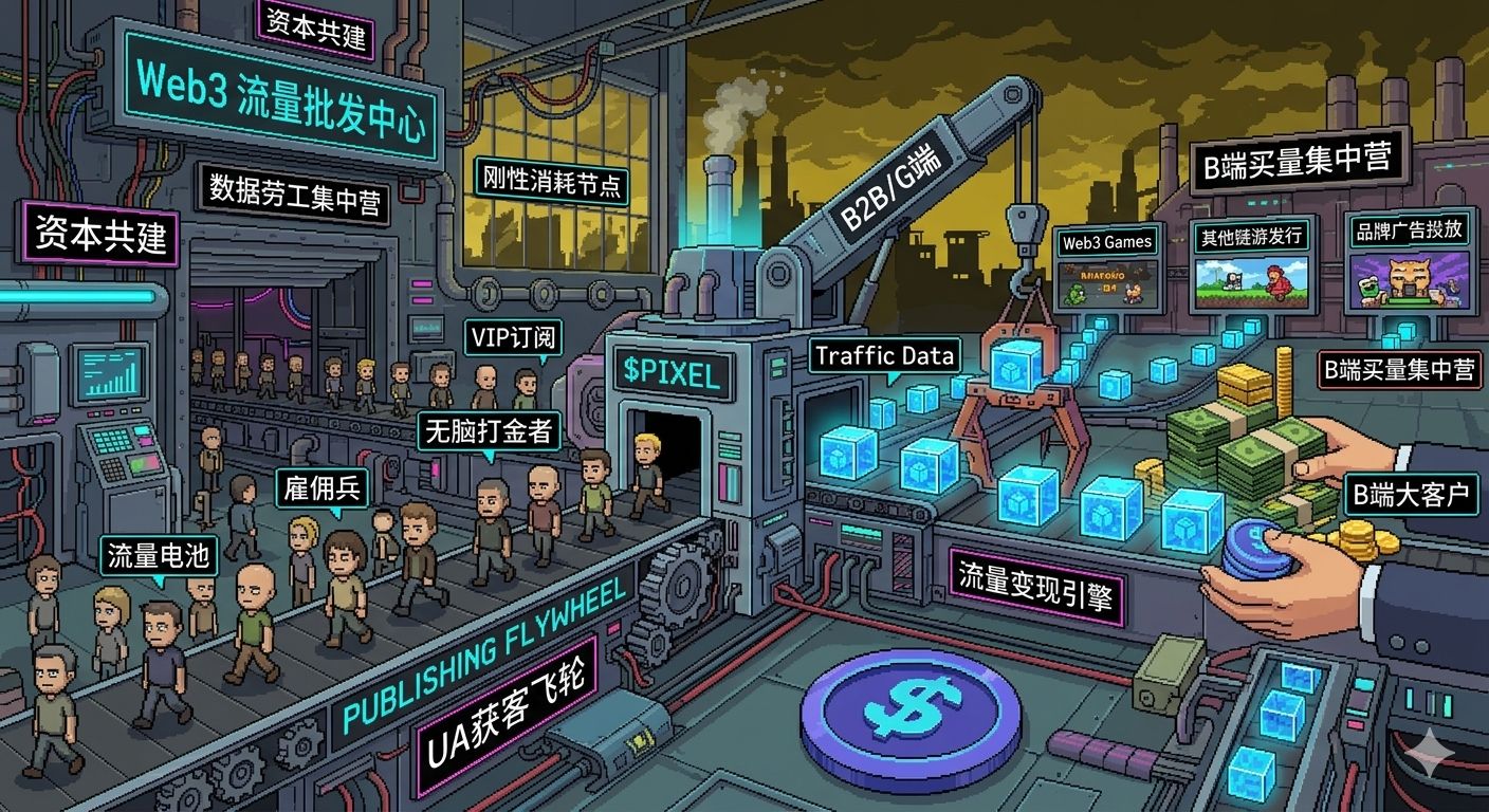 Once this flywheel is running smoothly, you'll see a flood of B-end project teams coming in with real cash, paying the toll with $PIXEL , turning this into a 'Web3 traffic wholesale center.' The cost? The native P2E players will be completely alienated. Because the system's token rewards are extremely expensive, their output is reserved for high-net-worth users who can continuously reinvest and consume. The free players at the bottom are essentially 'traffic batteries' sold to B-end clients at a clear price by the system.